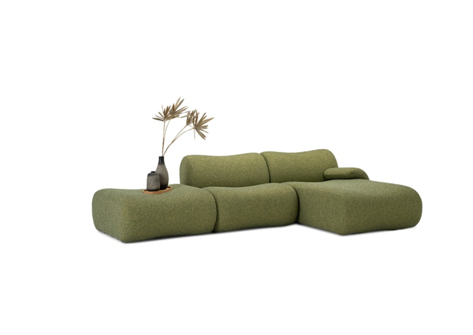 The LUXEMBOURG model has a modern, organic design, characterized by soft lines and generous shapes that invite comfort. The gently sloping backrest favors a relaxed posture while providing optimum back support. The armrests are subtly integrated, continuing the flowing curves of the sofa while adding a touch of refinement. The seat is wide and deep, ideal for extended moments of relaxation, whether seated or semi-recumbent.