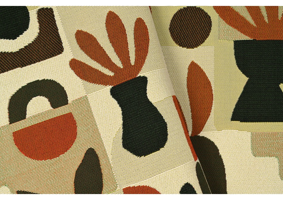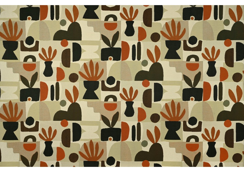 Grafische patronen en plantaardige motieven worden met elkaar verweven in dit eigentijdse motief met gestileerde vormen. Deze stof is geweven met polyolefine garen en combineert stevigheid, comfort en elegantie. Hij is perfect voor zowel binnen als buiten en geeft elke ruimte een artistieke en verfijnde toets. Verkrijgbaar in twee kleurencombinaties.